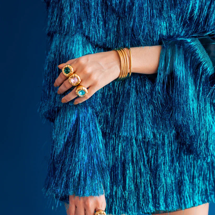 Vibrant and elegant, this ring showcases colorful square-cut cubic zirconia in a dazzling arrangement. Designed to be waterproof and comfortable for everyday wear, it’s a charming accessory that adds a joyful pop of color to any outfit.