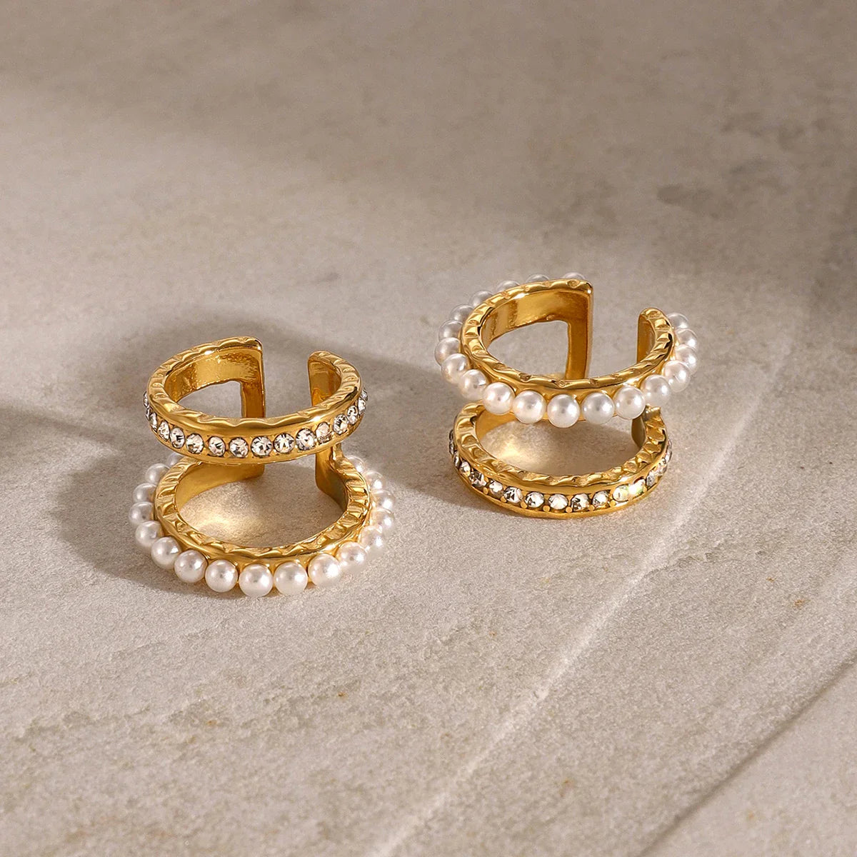 These Double Layers Texture Imitation Pearl Rhinestone Earrings offer a chic and elegant look with their textured double-layer design. Adorned with lustrous imitation pearls and sparkling rhinestones, they’re perfect for making a statement at weddings or special occasions. Ideal as a stylish gift or a glamorous accessory for any outfit.