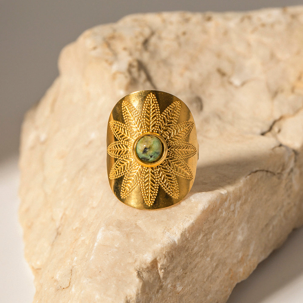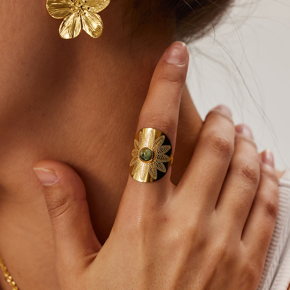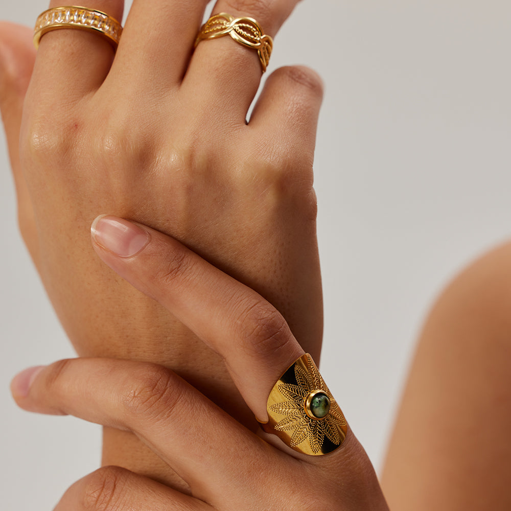 With its smooth, polished surface and ideal width, this medium-sized Spance piece is sure to catch attention and add a daring touch to your style. Whether worn solo or as part of a stylish ring stack, this vintage gold ring exudes perfection.