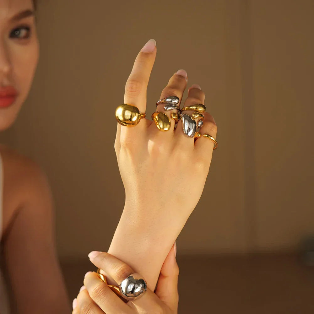 Exaggerated Ball Ring for Women, featuring a bold and trendy design with a textured metal finish. Waterproof and durable, this statement jewelry piece adds elegance to any outfit. Perfect for romantic occasions, galas, and as a stylish gift for women.